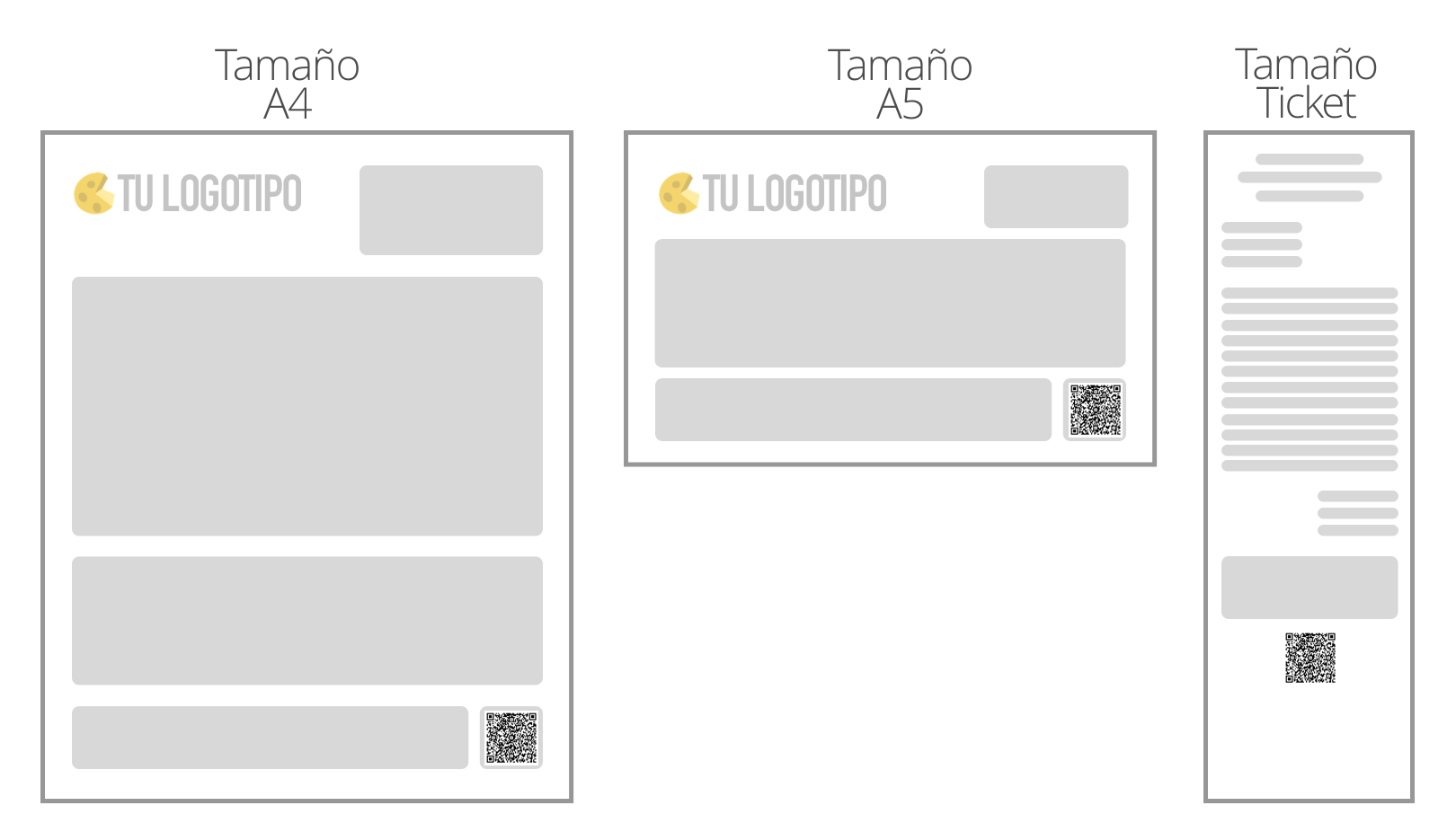 - Representación impresa en Tamaño A4, A5 o TICKET.